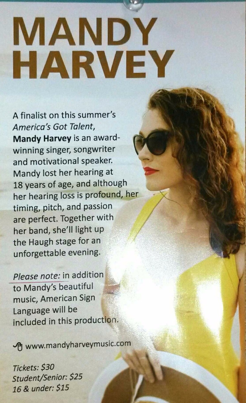 Join us in welcoming Mandy Harvey this weekend, and treat yourself to an evening of music, heart, and inspiration.