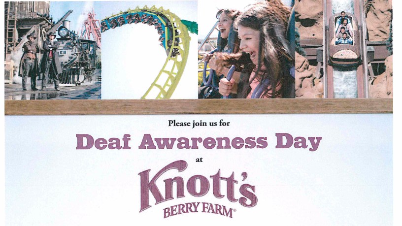 The staff of OC DEAF invites you to a very special day of entertainment and fun at America’s first theme park. Advocates, families, and friends accompanying the deaf and hard of hearing are also invited to enjoy this exceptional value during their visit to Knott’s Berry Farm.