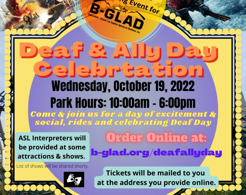 Come & join us for a day of excitement & social, rides and celebrating Deaf Day at Universal Studios Hollywood. ASL interpreters will be provided at some attractions and shows.